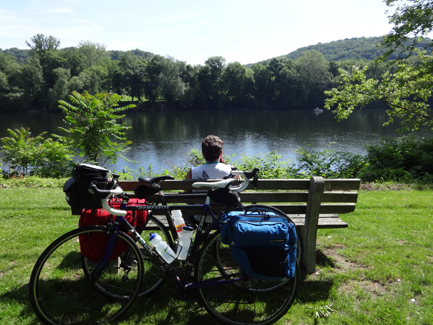 It was a nice ride. We forced ourselves to take a butt break at mile 12, on the Delaware.