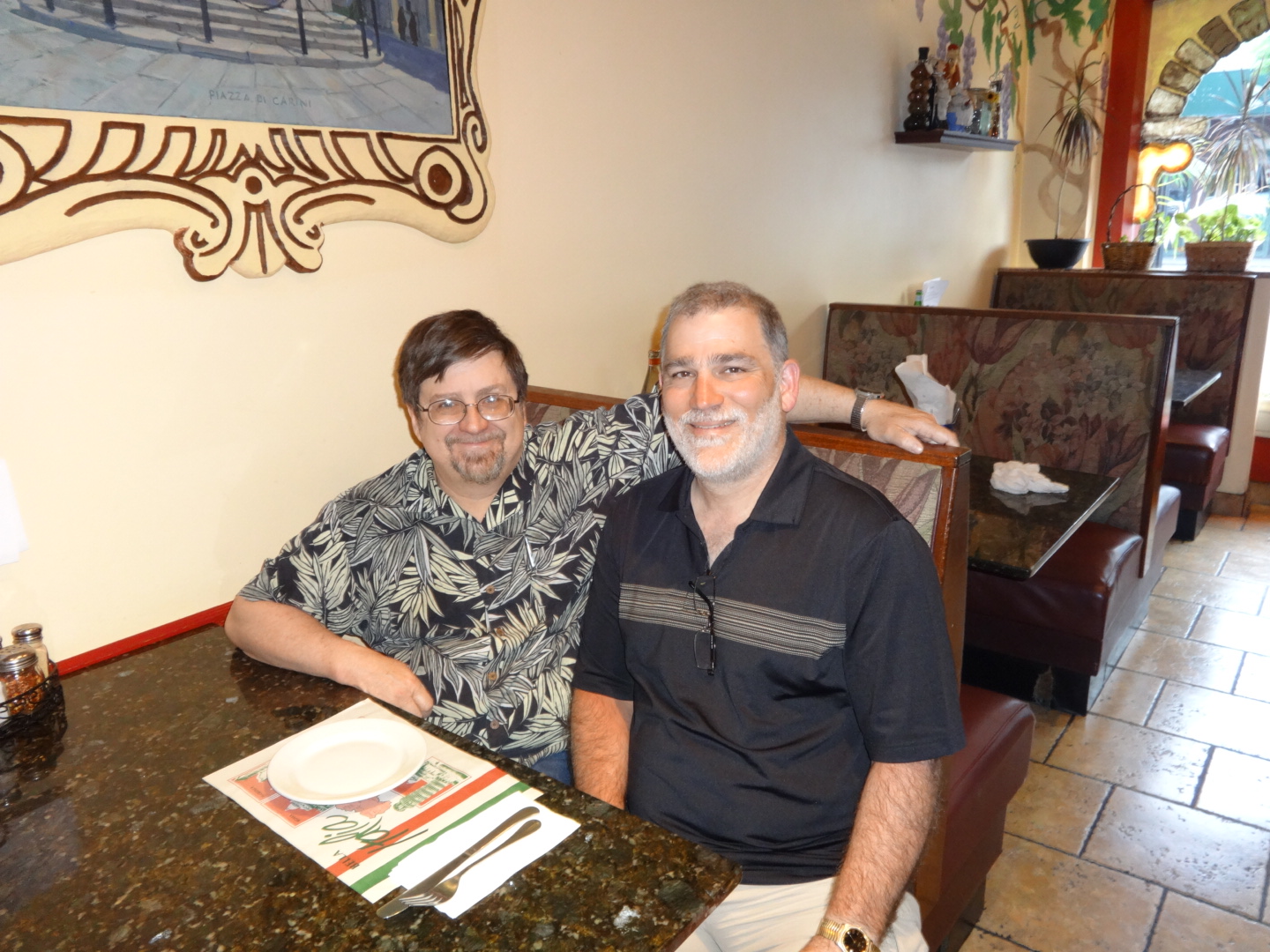Here are Dana and Doug at Sal’s – you will be happy to note that Dana is no longer dressed in a towel.