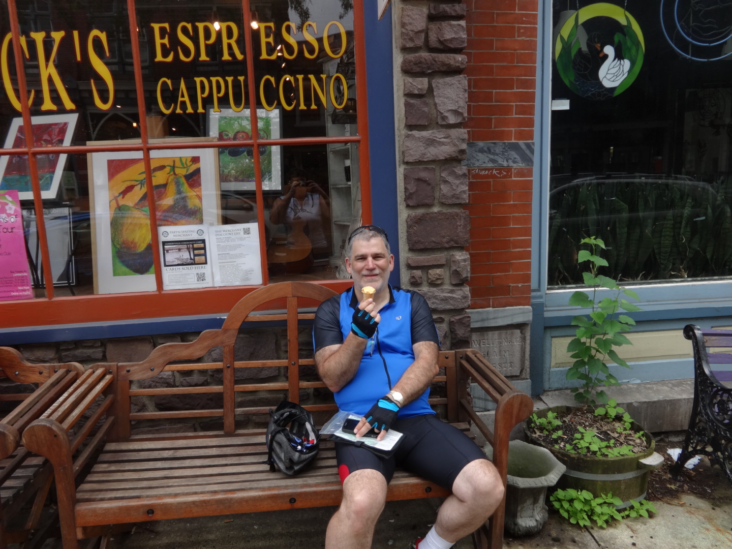 Today was the easiest day yet – riding along the Delaware was basically flat. Rode through Frenchtown, NJ – a really nice, picturesque town.Kept going another 15 miles to Lambertville, stopped for ice cream. There is always ice cream.
