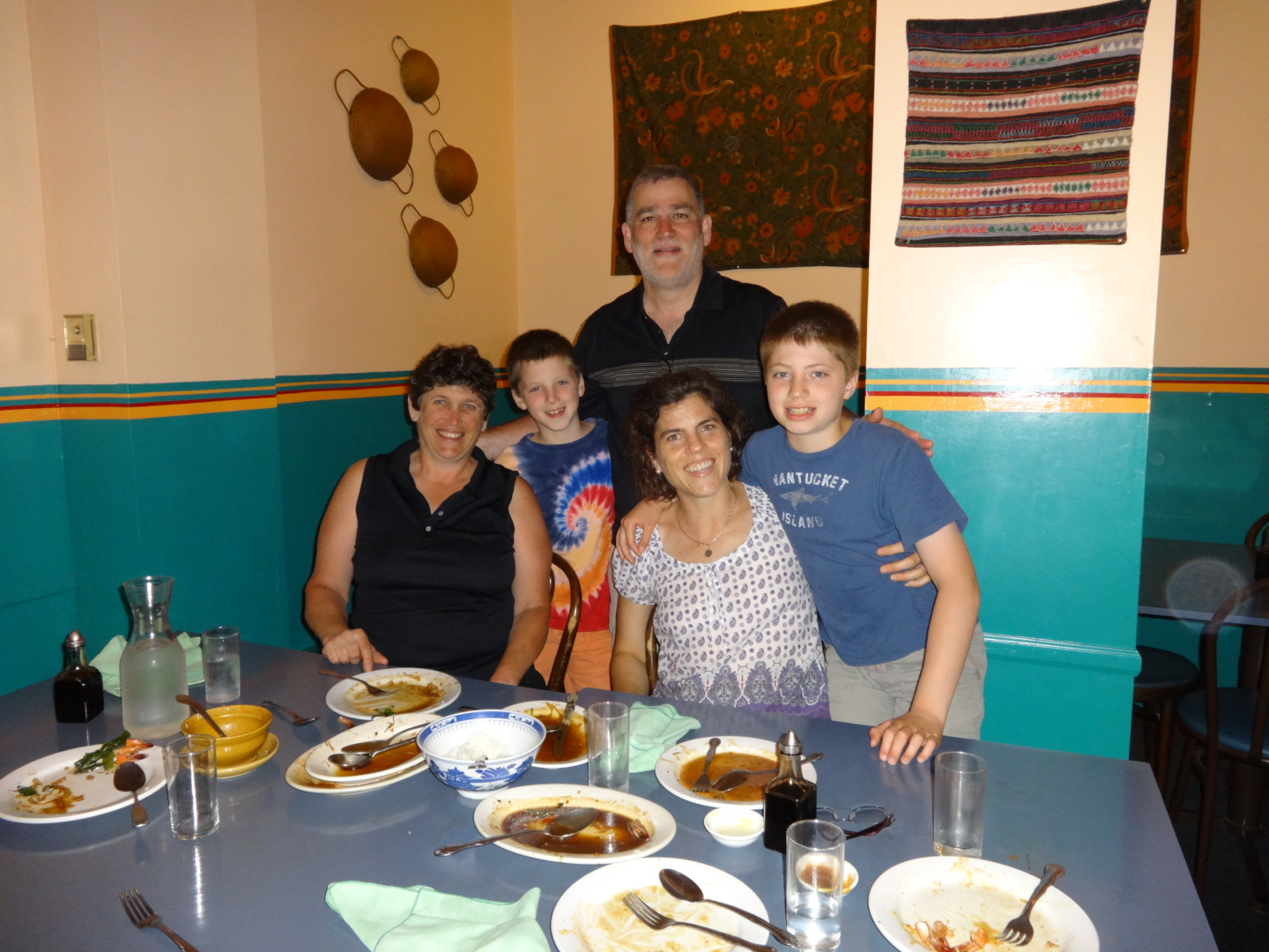 The five of us went out for Thai food in Lambertville. Andrea drove us there and back. After being on bikes for so long, cars seem very fast. On a sad note, now that we have left the Delaware, the ride is going to get hilly again for another 240 miles or so. On a good note, the Bark-O-Lounger feels pretty good.
