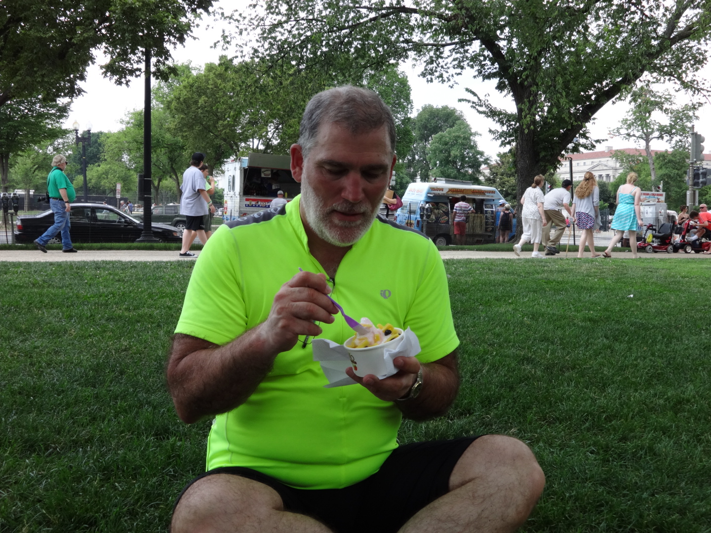 Anyway, after 30 miles we got to the mall in DC, and both of us mutterred “food carts” and we rode another 2 miles along the mall in search of falafel