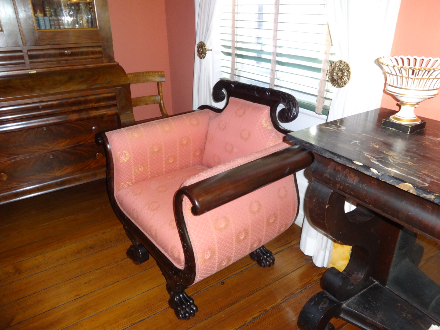 This is a very comfortable paw-foot chair that Dana liked, he’s thinking maybe we can build one at home. But ours will be a claw-foot, since we have a case of claw-feet in our shop.