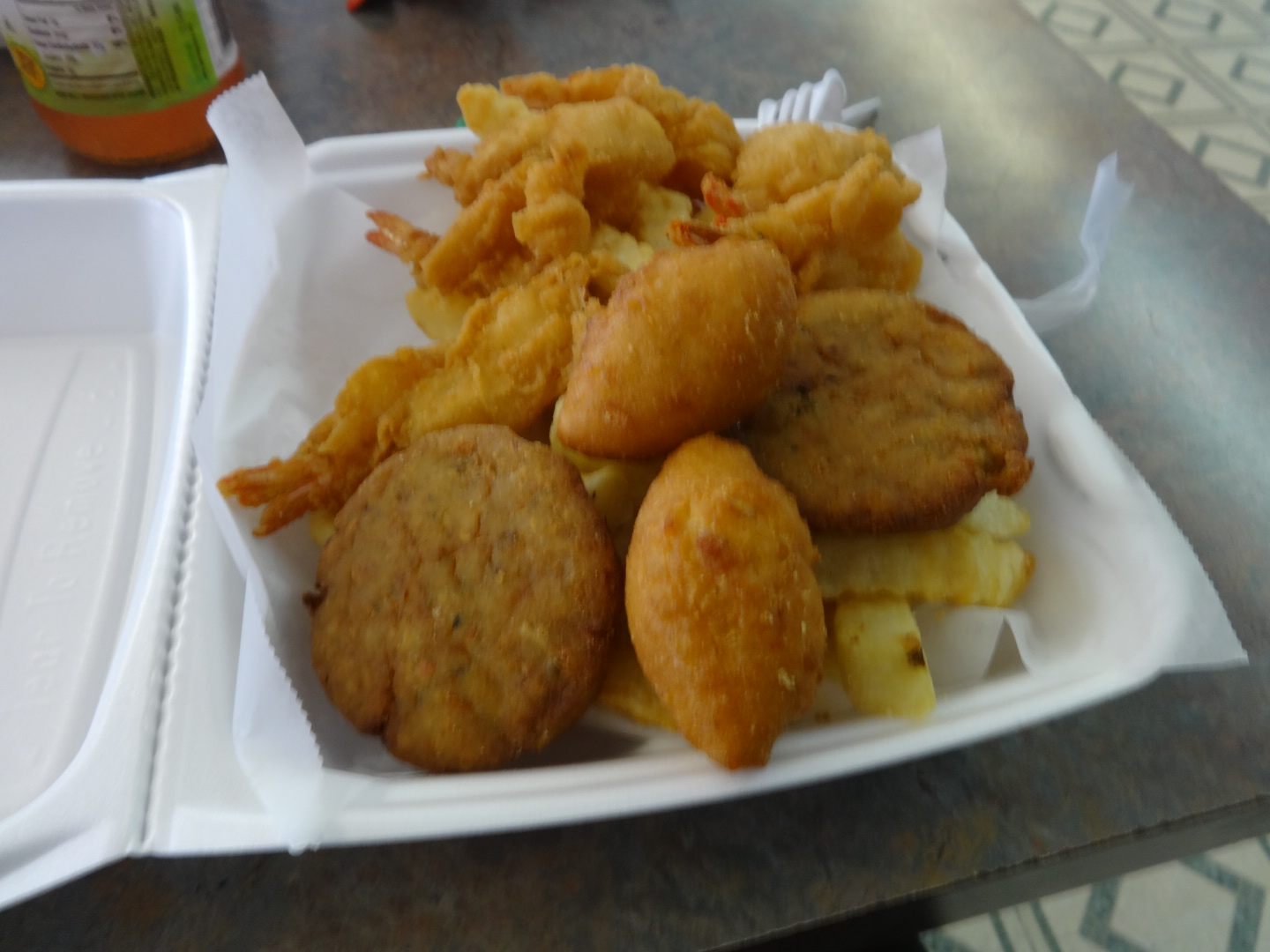 After the tour we walked down the street to Old Bay Seafood, where we had, among other things, hush puppies and crab cakes. I thought it was related to Old Bay seasoning, but it isn’t.