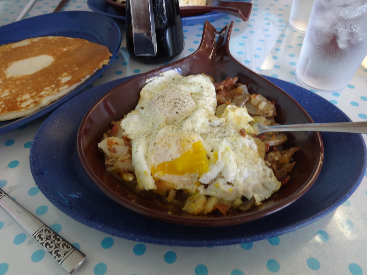 Today was a short 32 mile day. We started by crossing a short bridge from Beaufort to Morehead City. We stopped for breakfast at Pete’s Diner. And in honor of my Westford Recreation biking group, we had skillets!