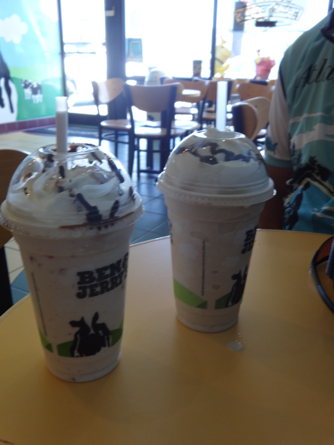 Sounds like fun! Glad you’ll have a long butt break. Enjoy the fireworks this week! Massages too. Dan’s eyes got really big when we saw the picture of Ben and Jerry’s shakes!