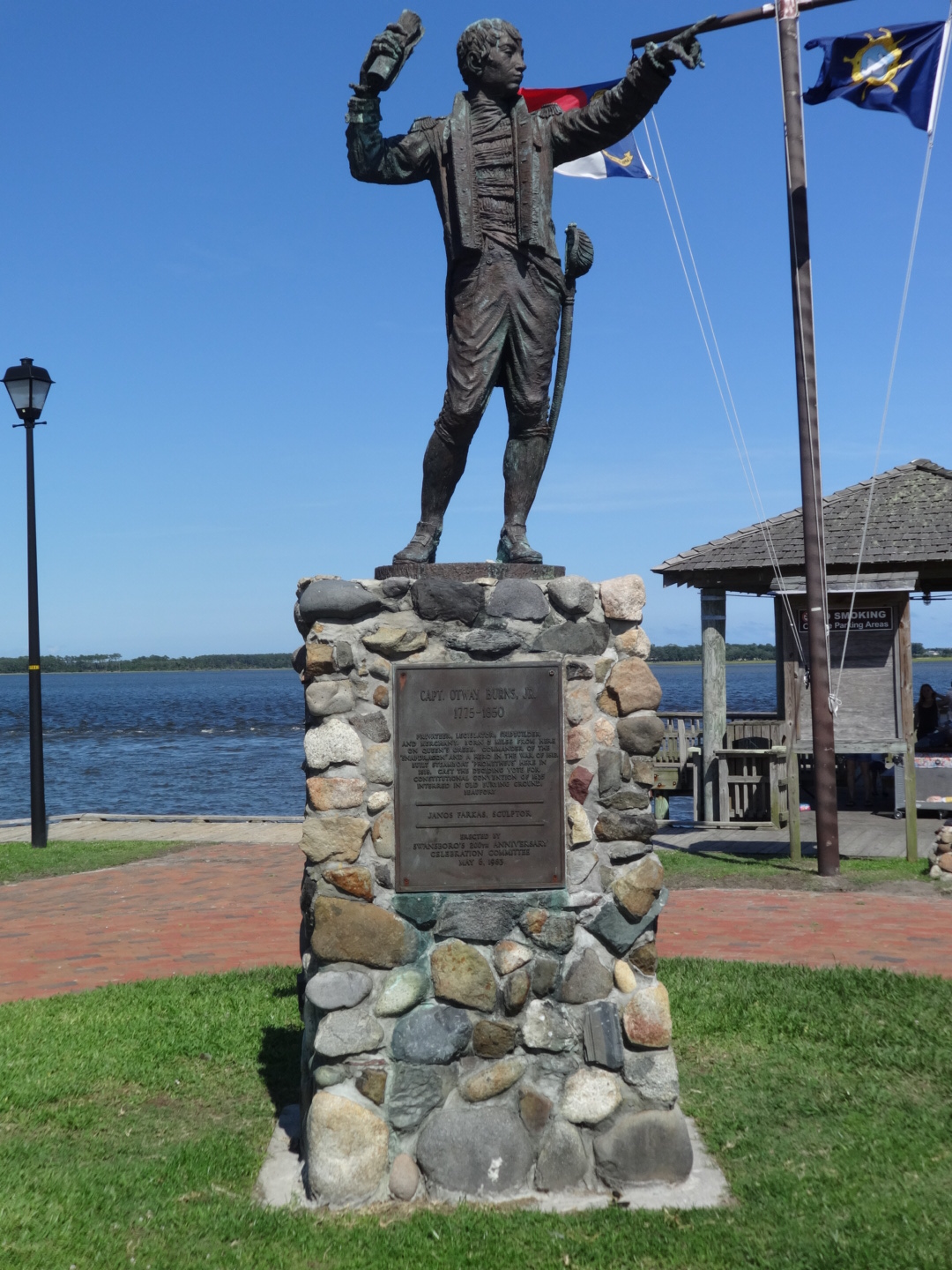 We rejoined the ACA route 3 miles out of Swansboro, on rte. 24. It was the first time all day that we were on busy, ugly roads. When we got to Swansboro, we saw this statue of Otway Burns…