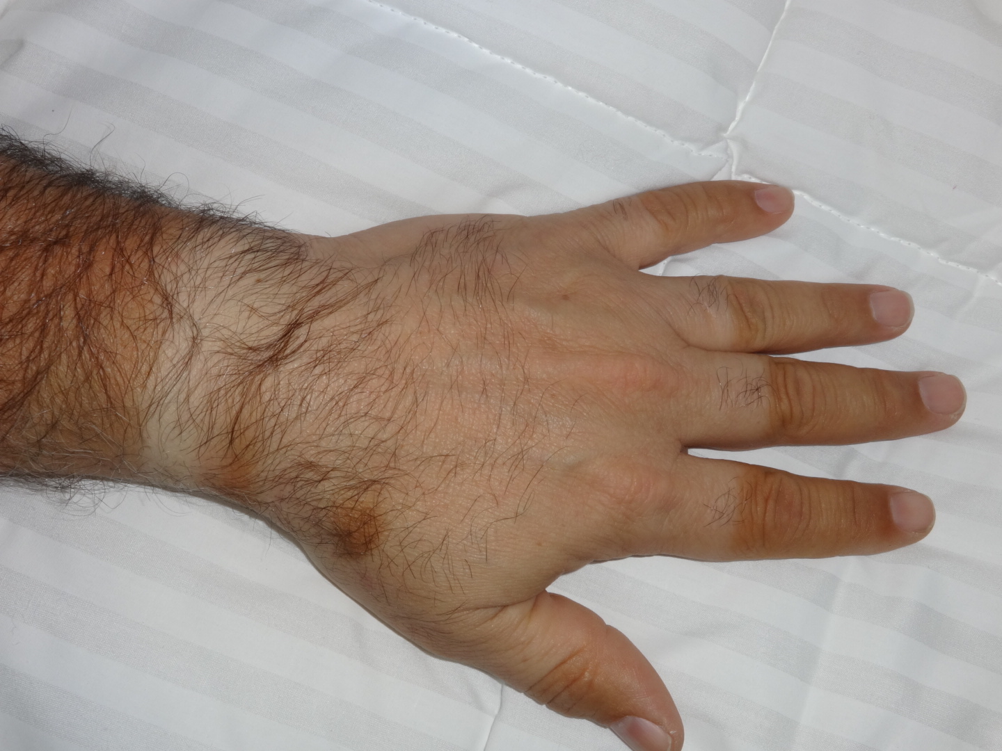 Since I really have nothing more to share, I thought maybe we could take some pictures pf our tan lines, but Dana thinks that’s silly. Here is one of Dana’s hand, just to give you some idea.
