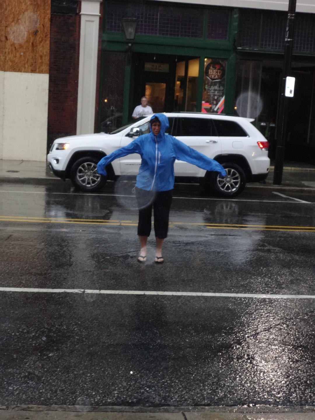 We walked down to the waterfront to eat our ice cream, and we saw Penny and her dog, Rudy. We met them yesterday, so when she saw us she stopped to chat. We chatted until it started raining, then we headed back to the hotel. Unfortunately, the minute it started raining, it started pouring, so by the time we got back here we were drenched.