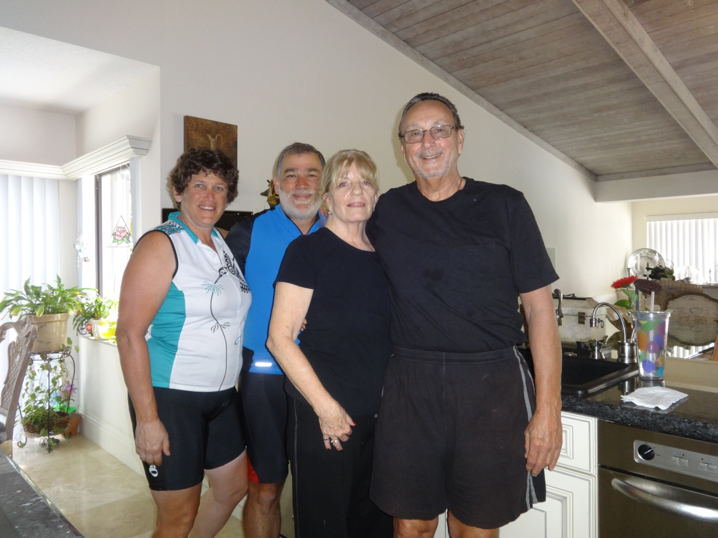When Dana finally woke up this morning he was raring to go on a bike ride. He insisted that the storm we were waiting was never going to happen. So immediately after breakfast with Fred and Dorothy, we headed out. But first we took a picture – I meant to take a picture at The Little Havana Restaurant last night, but I forgot.