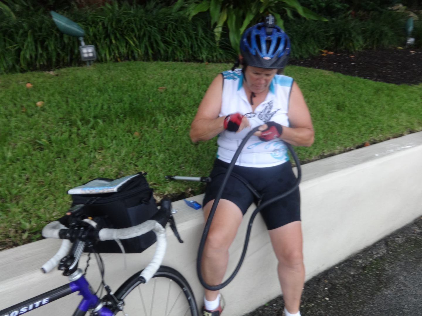 Our day started with my rear tire going flat just as we left the hotel, so we sat in the motel parking lot and fixed it. It was sort of serendipitous, because while we were there we realized that we’d left our water bottles in the room. Once my tube was replaced, we rode to the ocean in Palm Beach and Lake Worth. Miles and miles of mansions.