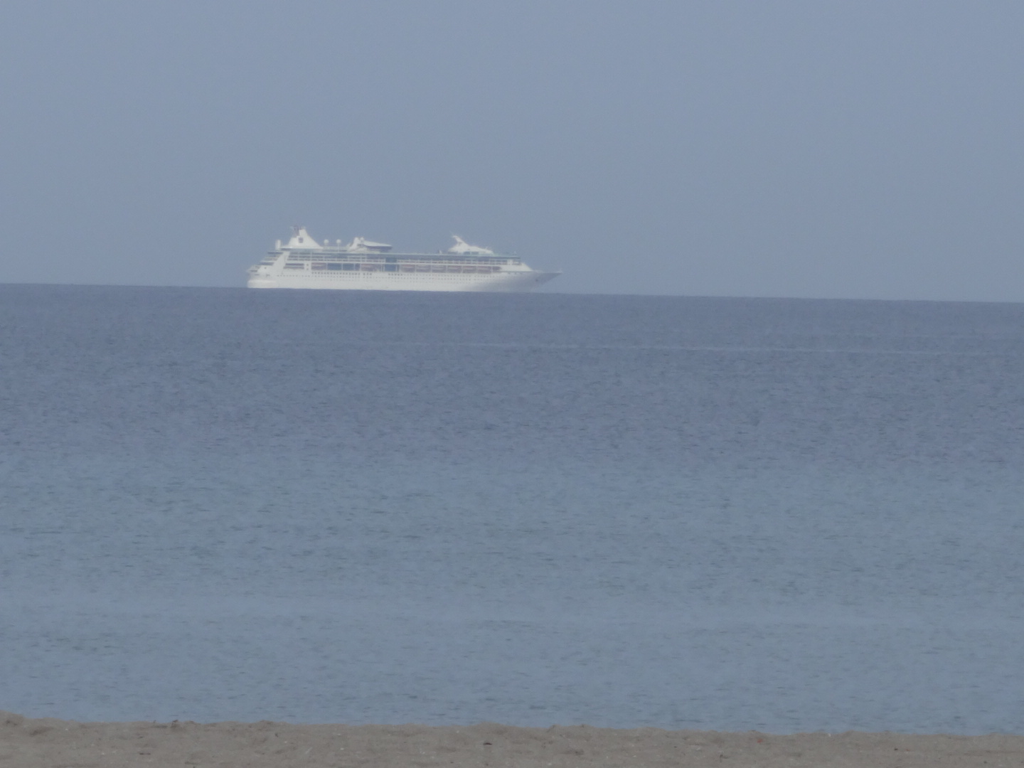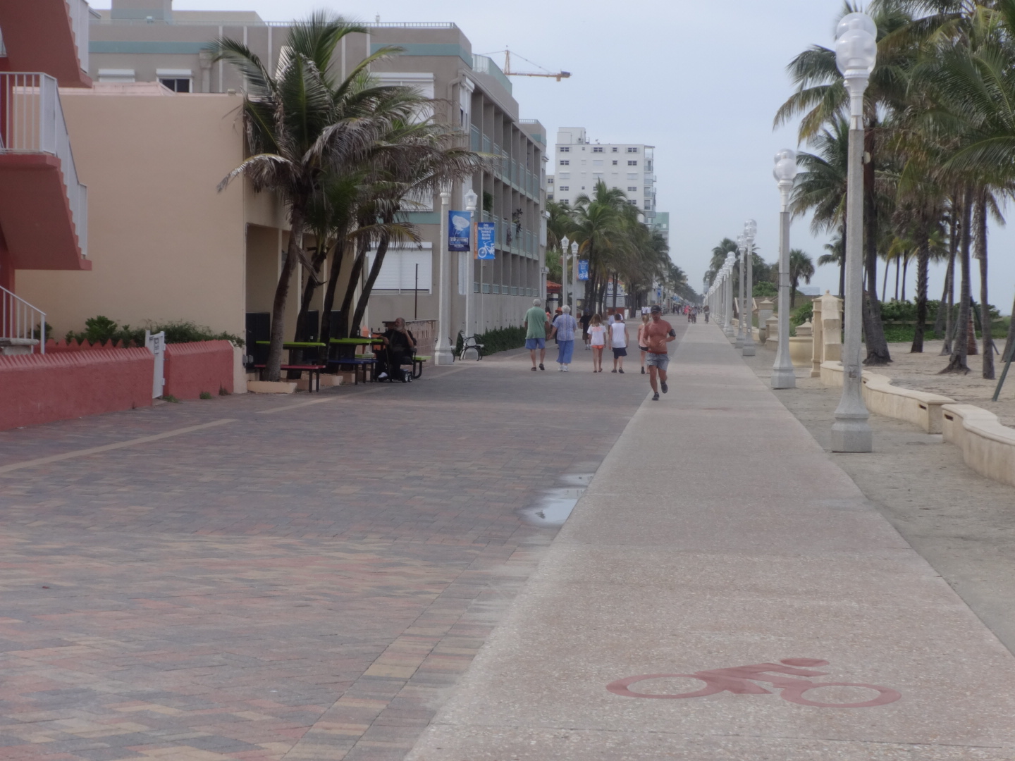 Then we got to the boardwalk on Hollywood Beach. It was beautiful, people playing on the beach, cycling on the boardwalk, all that nice, wholesome beach stuff. We saw a cruise ship just off-shore