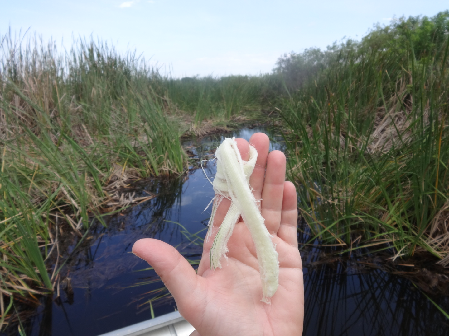 Eating take-out Chinese food. Just got back from the Everglades airboat tour. We learned how to make a bandage from a cattail: