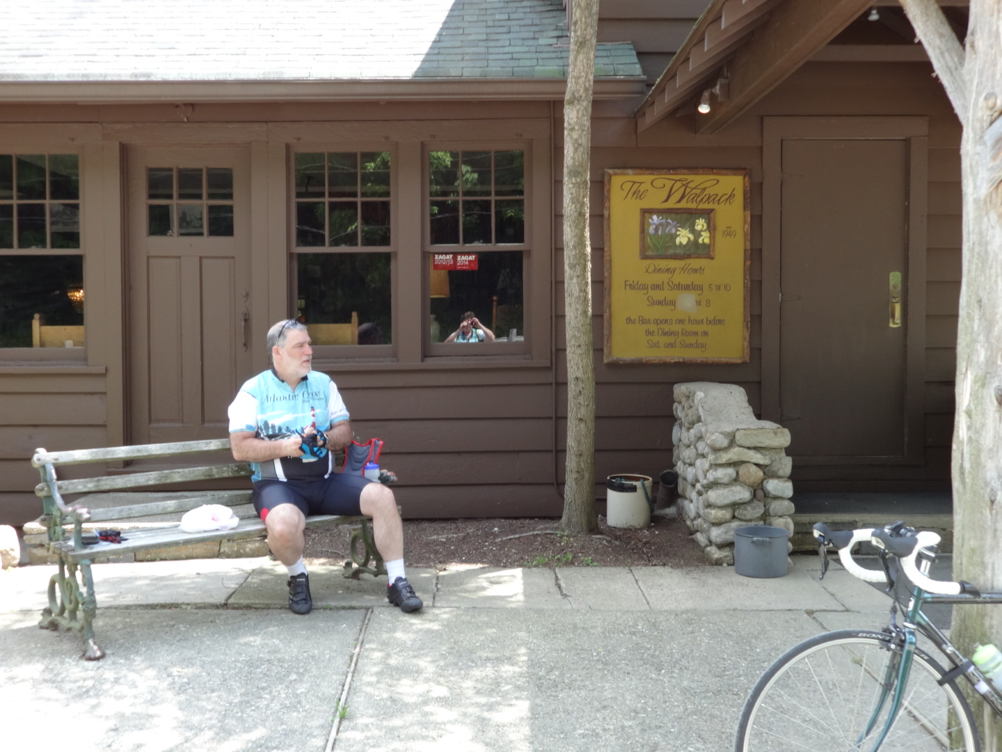 We took a butt and lunch break at the Walpack Inn, which is just outside the town of Walpack. From what we could see, Walpack consists of a post office and 5 houses. Of course, the entire area consists of mostly abandoned farm houses, so it was nice to see a living town. However, it did not have any stores that we could see. In fact, after leaving Milford, we saw zero stores on our entire ride. Which explains the sandwiches we bought earlier in the day.