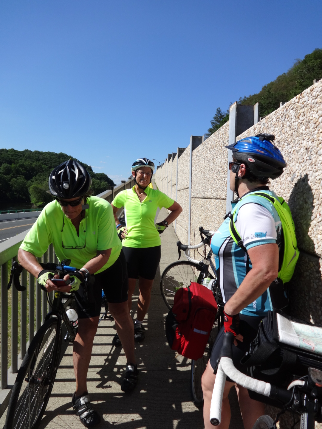 But I was feeling reasonably confident because it was looking to be a relatively flat 30 mile day. So I abandoned my escape plans, hauled my bike into the hallway, and we started our day – off our route, staying on the PA side of the river. Our plan was to cross to NJ, back onto the official ACA route, in Milford.